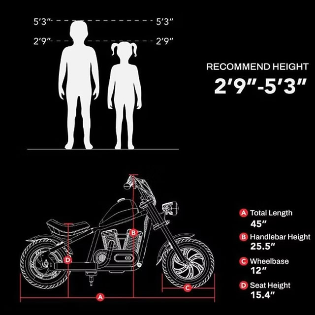 & Free ShippingFor Children Ages 3-12 Built With A Resilient Steel Frame Dimensions of 45.3 x 19.6 x 28.5 inches Weighing 33lbs 160W Motor 3 Adjustable Speed Level Speed Up To 10 MPH 60 Minutes Of Continuous Ride Time Maximum Uphill Capability of 10° 12×3″ Tires Simulated Fog Feature Colorful Ambient Lights Makes Noise, Bluetooth Enabled