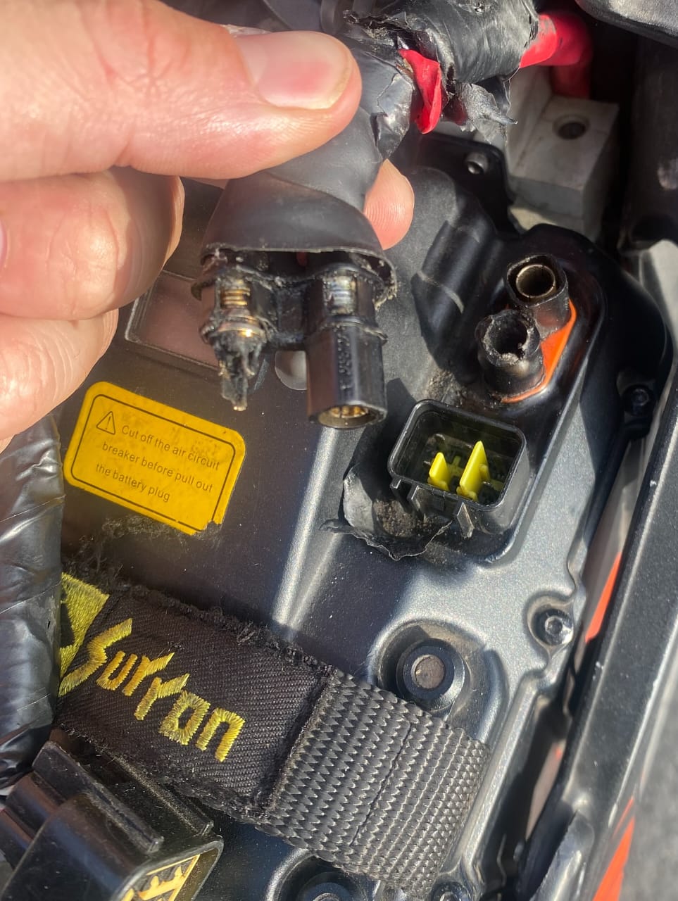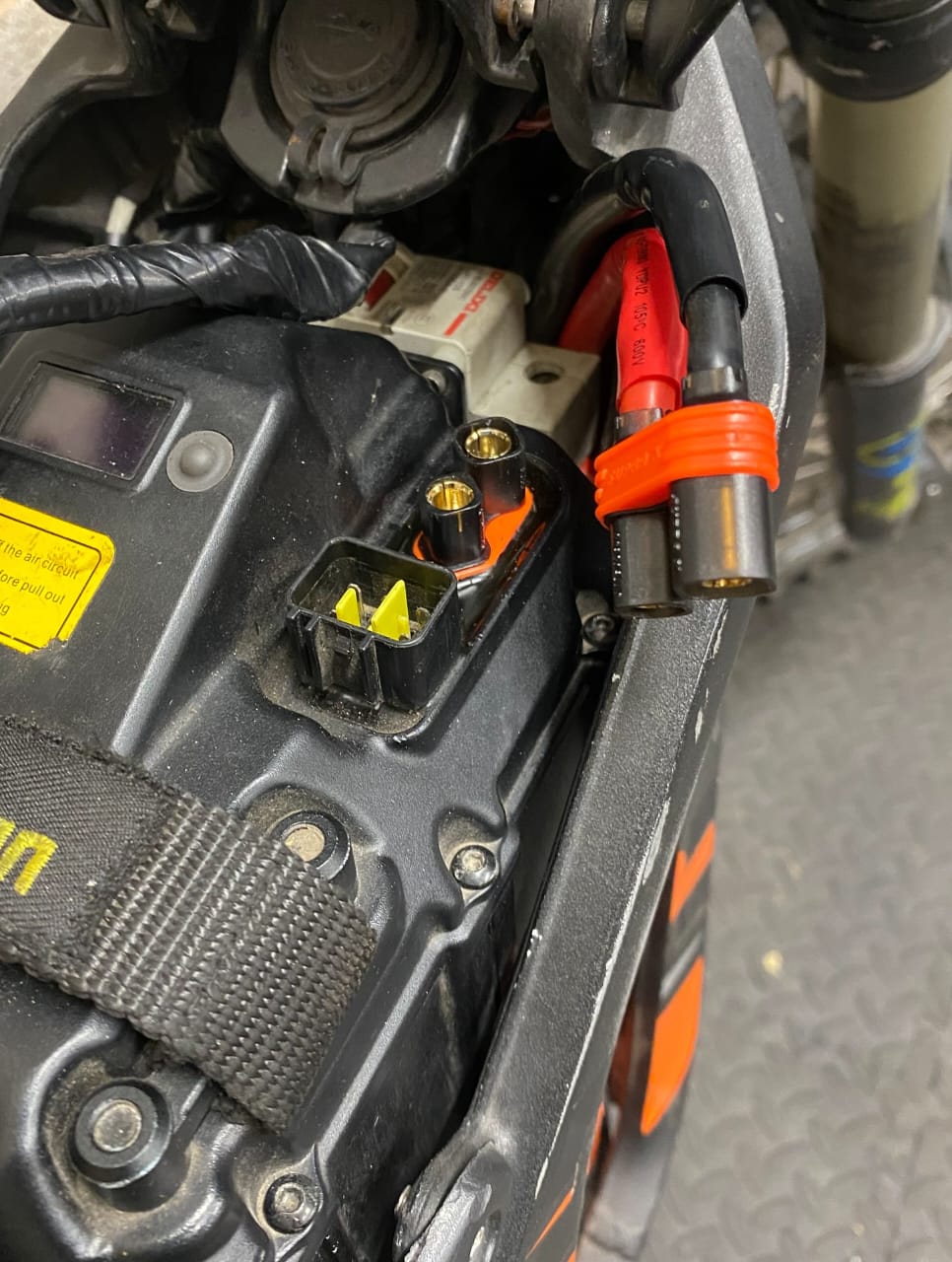 Drivetrain Setup (Chain Tensioned & Lubricated): Electric motors deliver 100% torque instantly, which naturally causes chains to stretch over time. We precision-adjusted the chain to the exact factory tension spec to prevent sprocket wear and slapping. Finally, we applied a premium off-road lubricant to minimize friction and keep the drivetrain whisper-quiet.